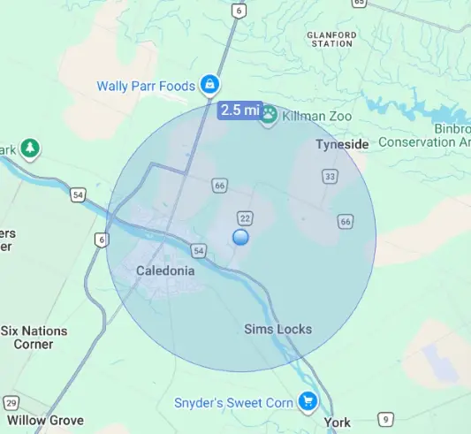 We proudly offer delivery within a 3 km radius of our location at 2 Richard William Drive, Caledonia. See our delivery area map at the bottom of this page.